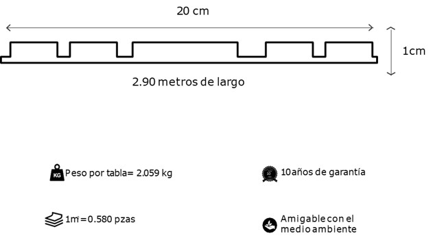 - Medidas: 0.580m2 por tabla